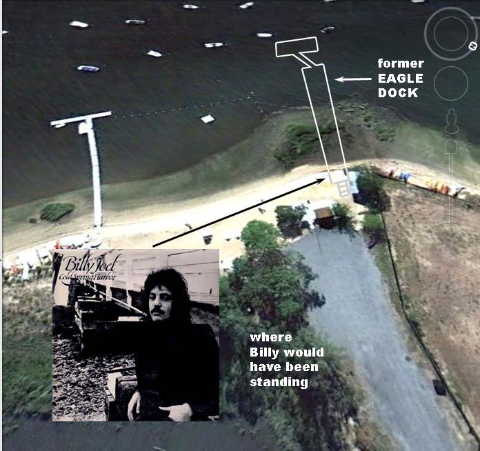 Billy Joel - Cold Spring Harbor (1971) - Album Cover Location - Cold Spring Harbor, New York. Here's the album cover. It is a picture of Billy standing in front of a long white dock named Eagle Dock which entended out from a private road to his right, about 100 feet into Cold Spring Harbor.