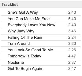 ...and it came out looking pretty much like the composite I made from with a photo across the harbor from down the street, in this shot with a deep blue sky. Here's the track listing.