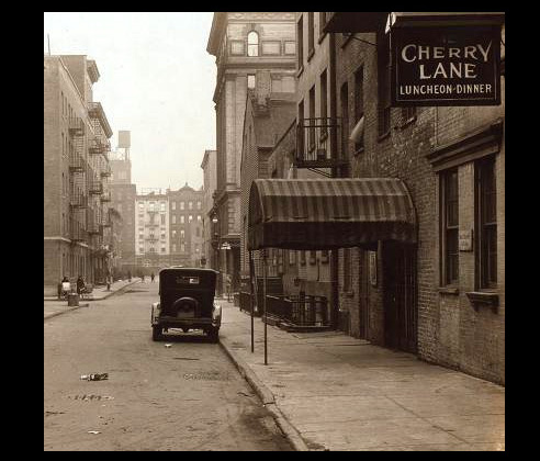 For you Village history fans, here's the same scene from the 1930's. (NYPL Archives) The New York Public library has cool digital photo archives of the street. The car in this photo is in pretty much the same place as Dave's car on the album. The Cherry Lane (now a theater) is at 38 Commerce Street.)
