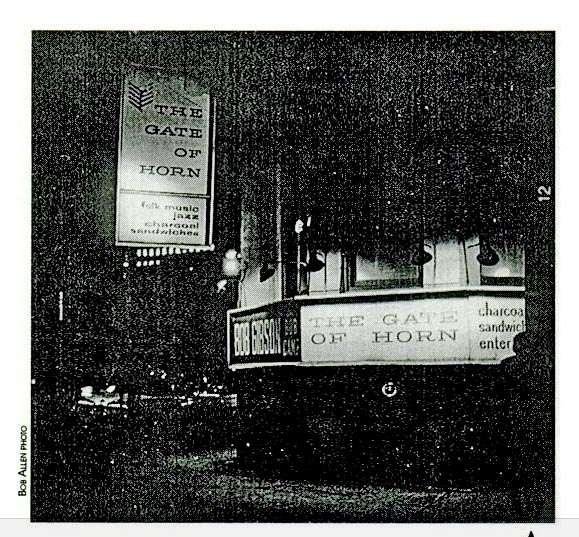 The real Gate of Horn looked more like this. It was run by Albert Grossman, who would later come east and be Dylan's manager and also be the person who put together the group Peter, Paul, & Mary, which helped make folk music wildly popular.
