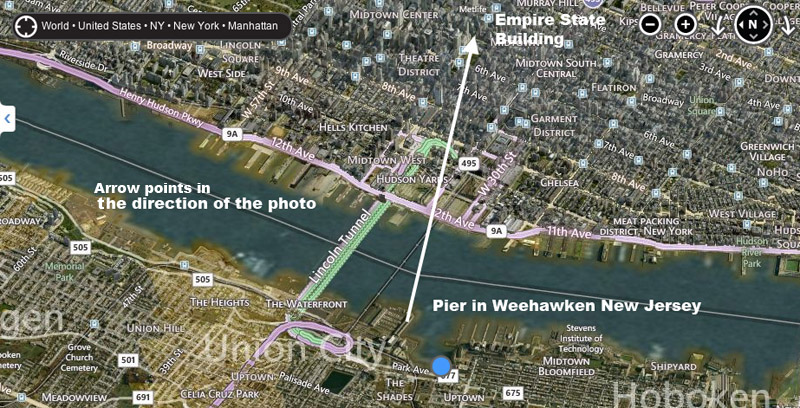 Then, using Google Street Maps, I estimated the same angle from across the river in New Jersey.
