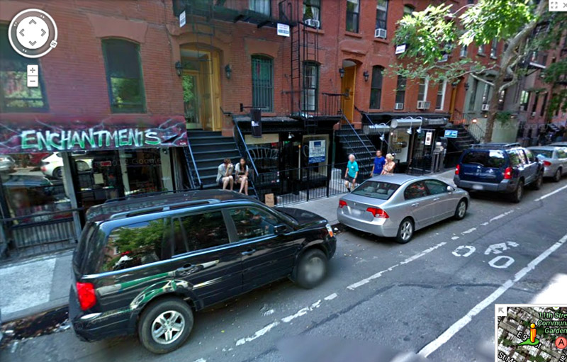 To find the film's Kettle of Fish set on Google Street Views, look for 420 East 9th Street.