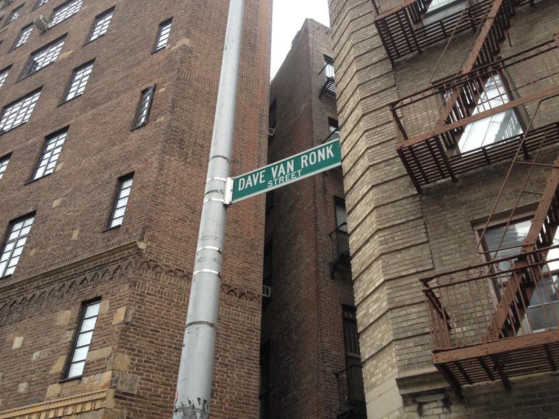 This is where Dave and his girlfriend, later wife, Terri Thal, lived in the late 1950's until 1961. The apartment was a fifth-floor walk-up located at 219 West 15th Street between Sixth and Seventh Avenue. Bob Dylan was a frequent guest on their couch in his first year in New York before he found an apartment at 161 West 4th Street.